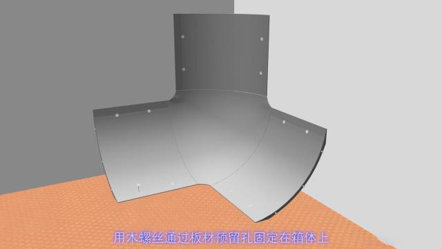 (1)鋁制藍(lán)箱弧面板,球面板,充分利用了鋁材的韌性,塑性的性質(zhì),安裝后強度高,不變形,防火防潮防蛀,對箱體直角角度和立面平整精度要求不高。1首先在球面板的三個方向用螺絲各連接一塊弧面板,2將連接好的整體安放于墻角,找好三個方向箱體的距離,用木螺絲通過板材預(yù)留孔固定在箱體上。弧面板依次按需要的長度連接,和事先安好的部分對接,但兩部分對接頭不需要螺絲連接,超長部分用角磨機鋸掉,用木螺絲將連接好的弧面板固定于箱體上,至此,球面板弧面板安裝完成,一般情況下2—3小時即可完工。3在鋁制弧面板球面板表面上薄刮一層膩子一遍。5小時后,如同普通墻面一樣,進行石膏找平等下一道工序。